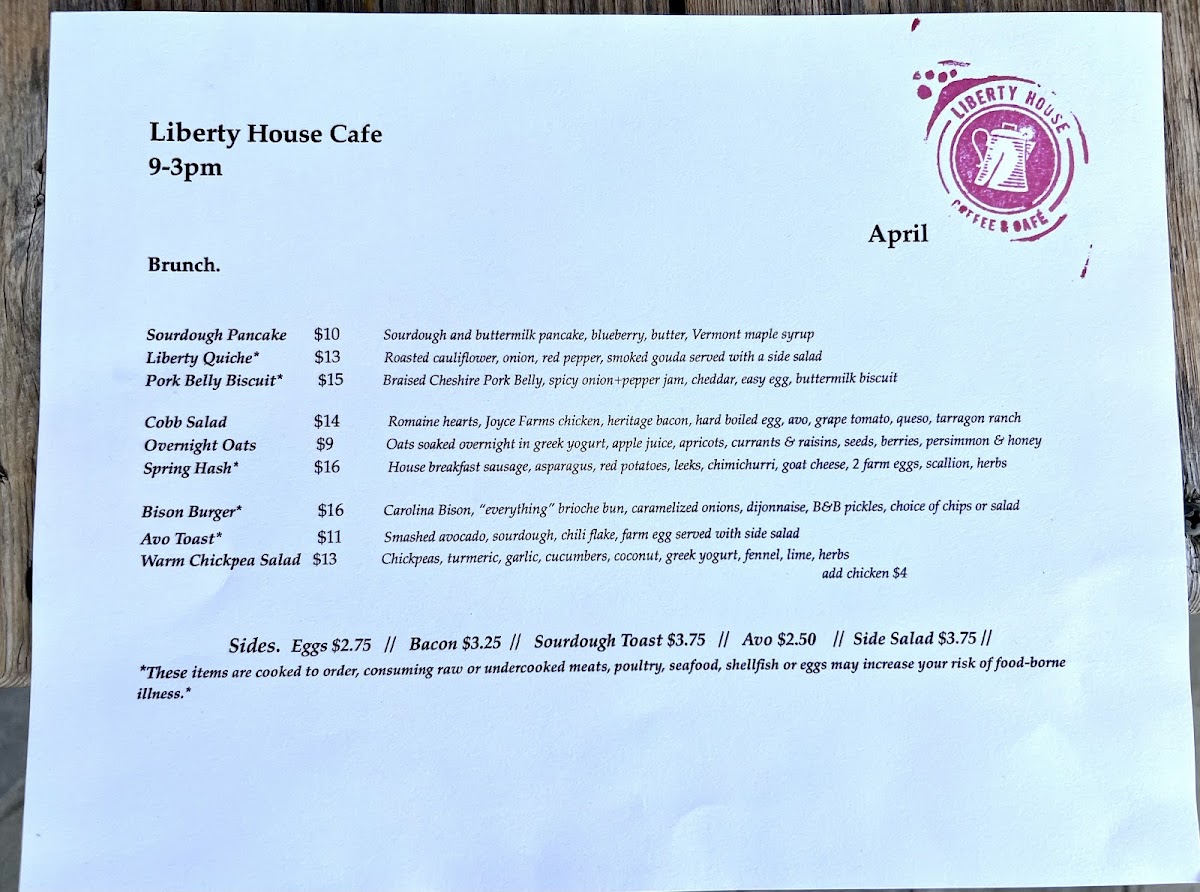 Two eggs your way, heritage farm bacon, underground baking sourdough, house made jam, Amish butter.